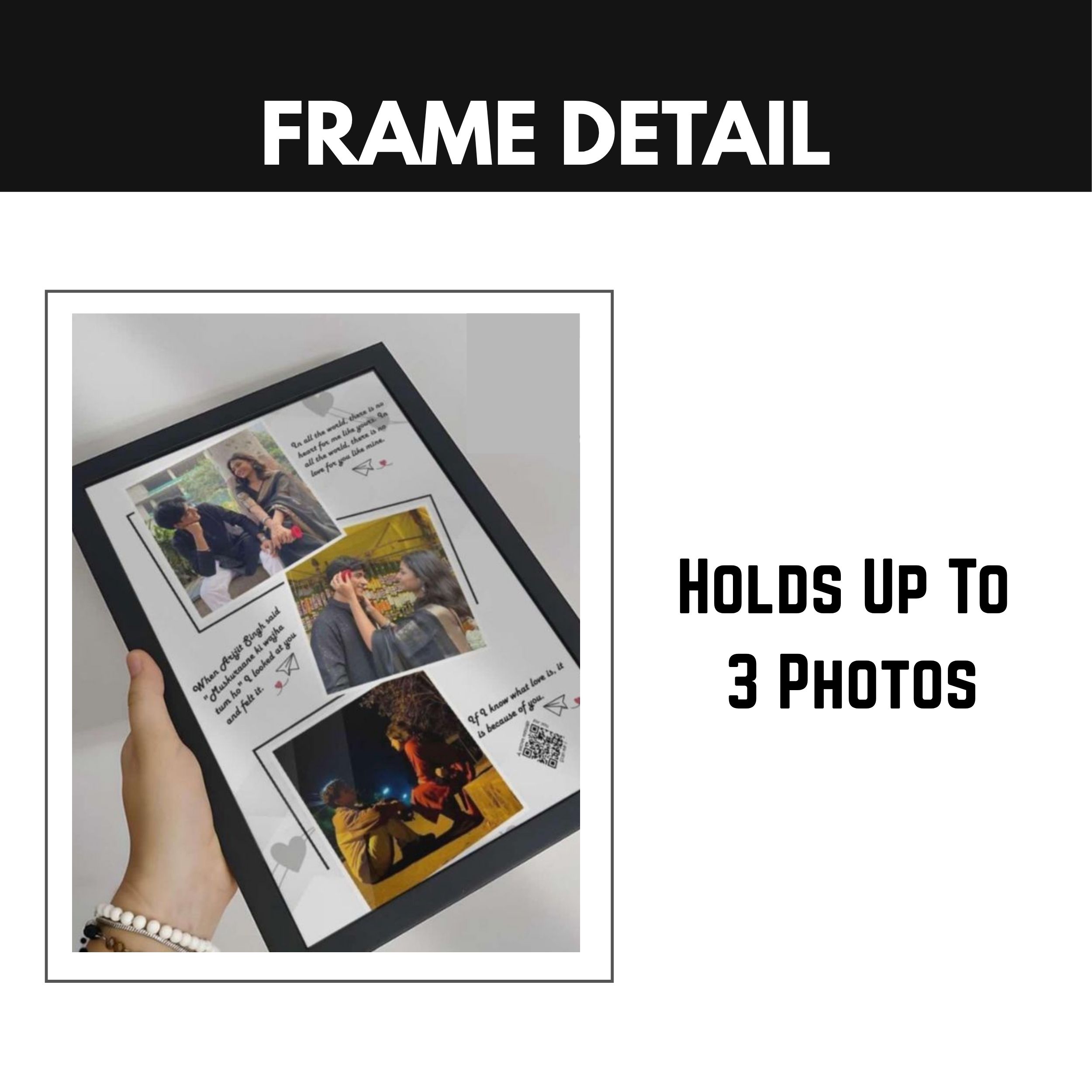 Celebrate your love story in the most personal way with this Custom Couple Photo & Quote Frame β a unique blend of your cherished moments and heartfelt words. This elegant frame showcases your favorite photos, custom love quotes, and even a QR code (that can link to your favorite song, video, or message).