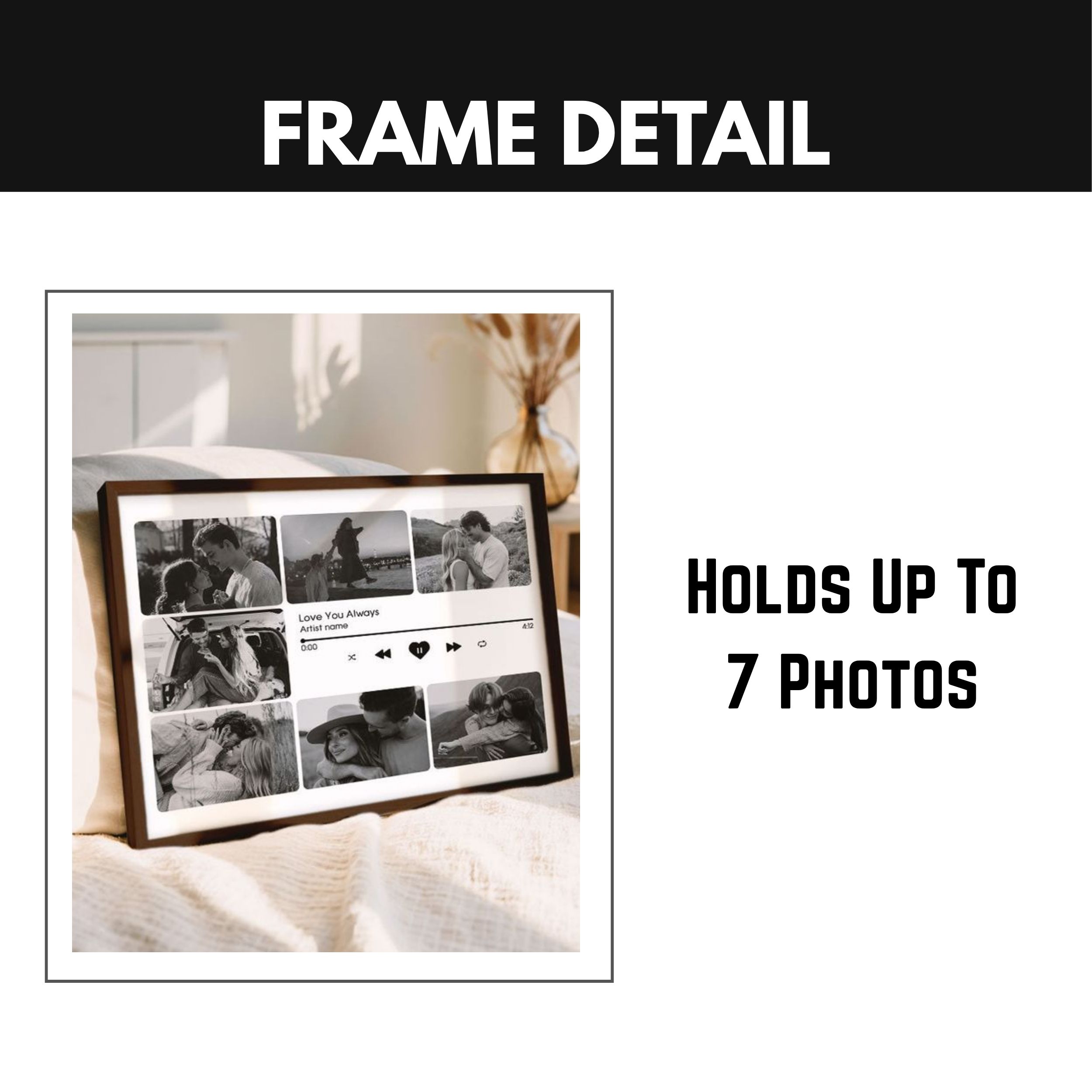Printed in HD quality on premium paper and encased in a sleek, durable frame, this piece adds a modern romantic vibe to your home or bedroom décor. Whether it’s your song, your moments, or your love story — this frame makes it eternal.